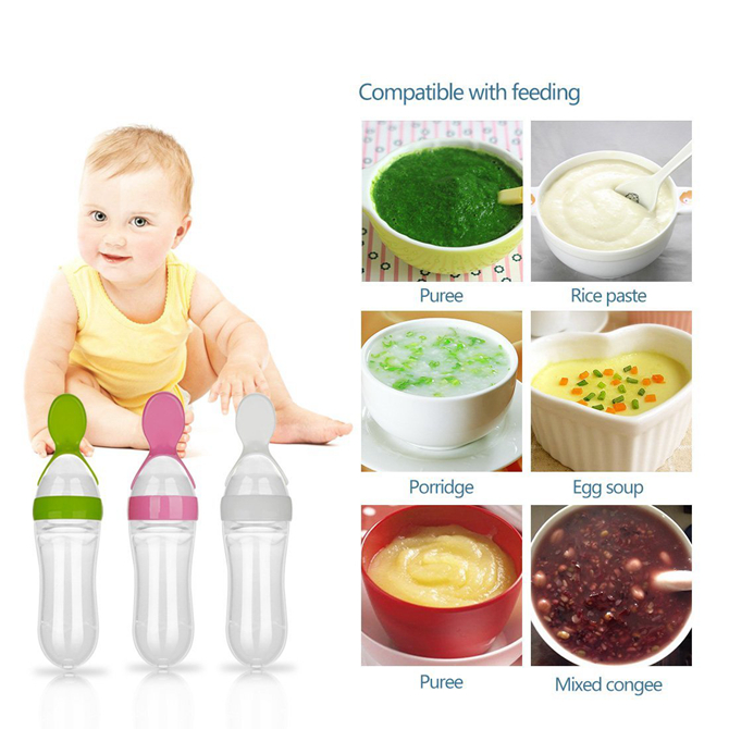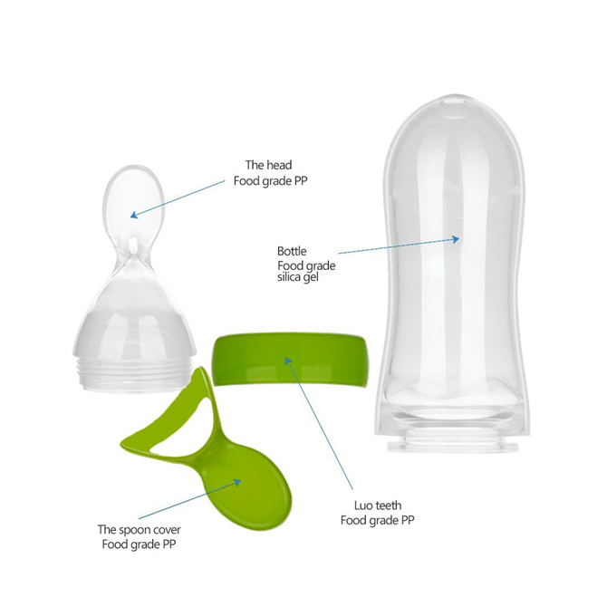 Product Name : Amazon hot sales Silicone 90ML baby feeding spoon /food feeder silicone squeeze spoon
