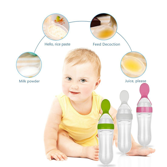 Amazon hot sales Silicone 90ML baby feeding spoon /food feeder silicone squeeze spoon