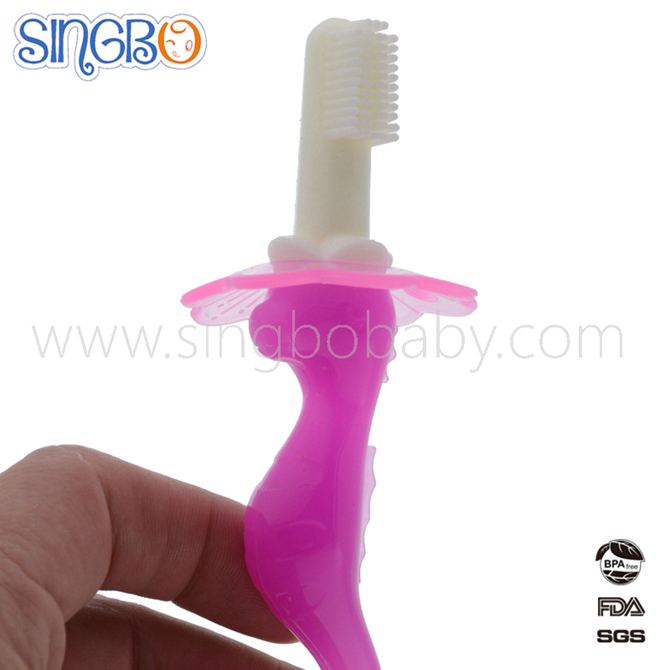 Mermaid/hippocampi-shape Infant bendable trainting silicone toothbrush with handle